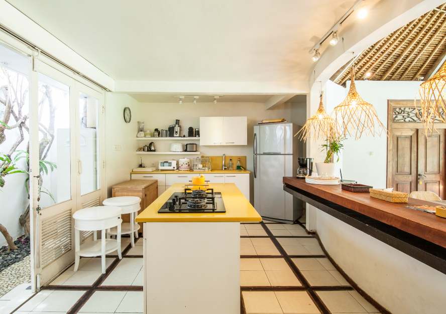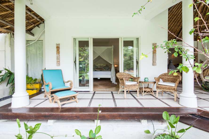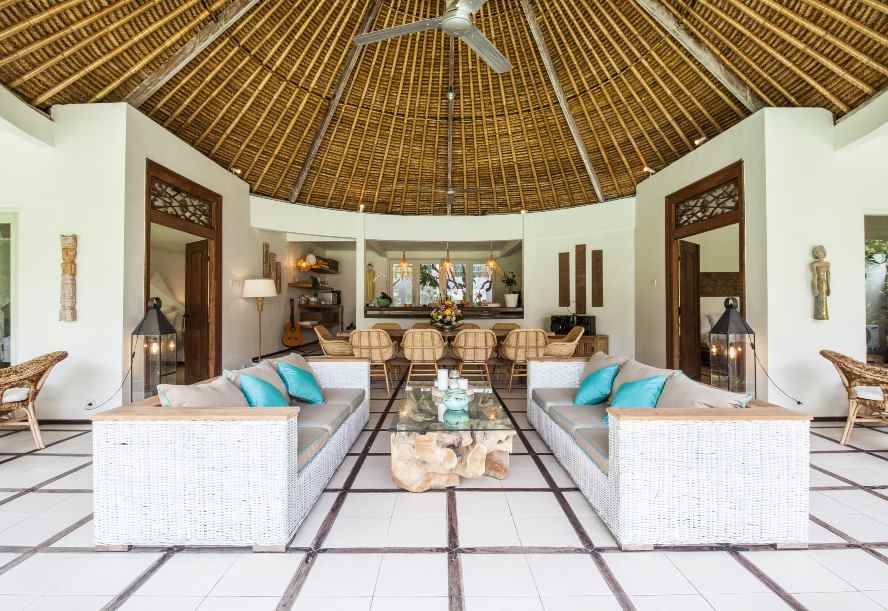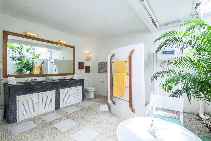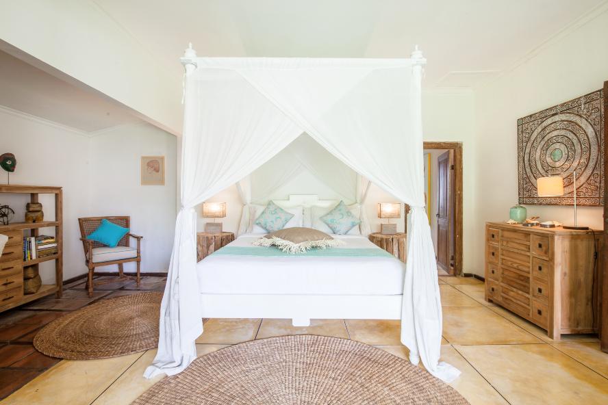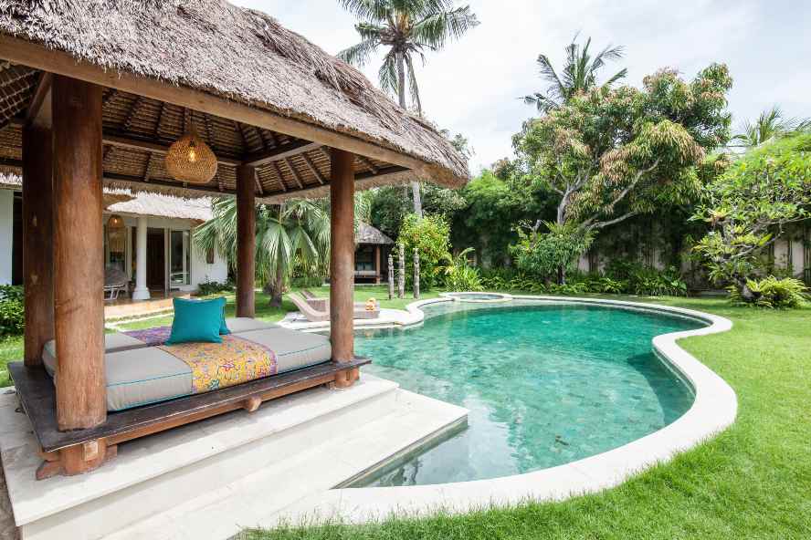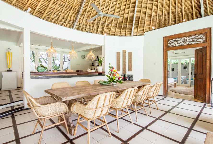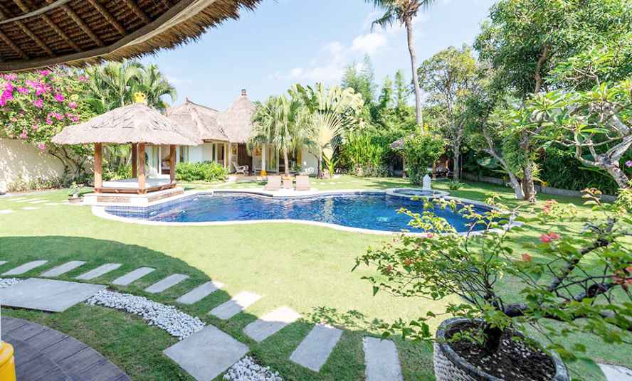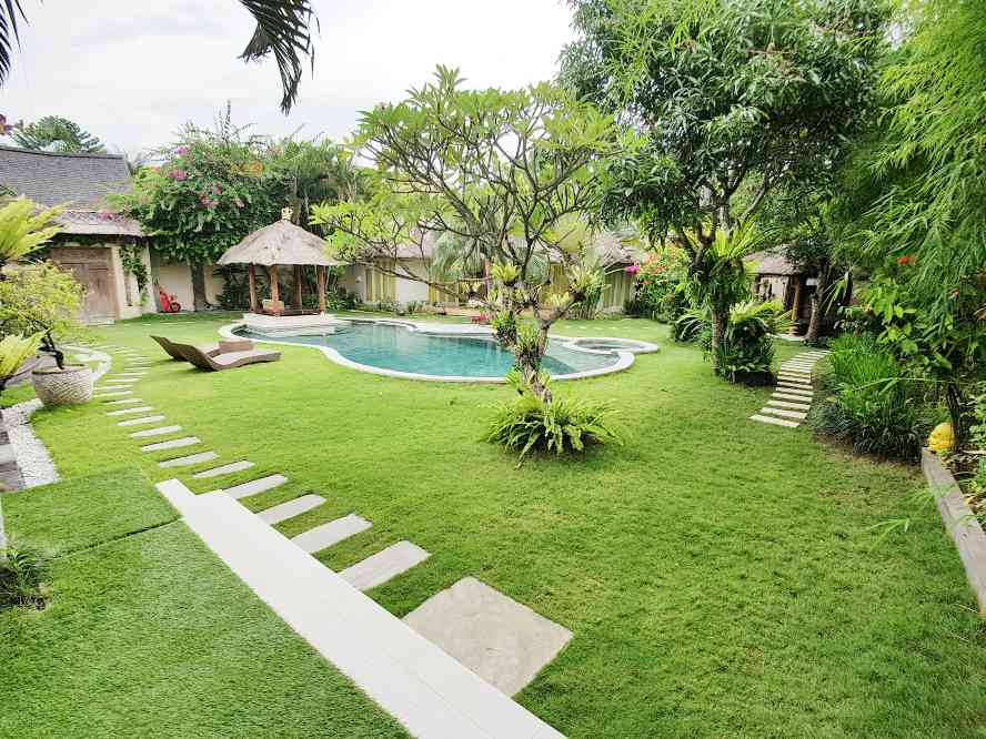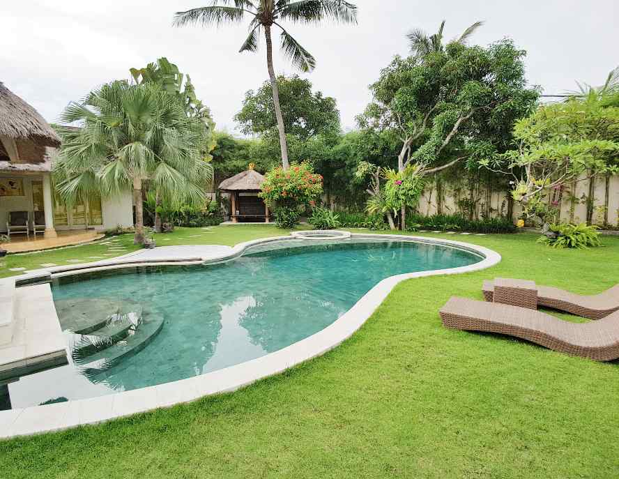 The VILLA has 3 large bedrooms with en suite bathroom. A large separate Balé with two bedrooms and shared bathroom with bath tub. The living room and dining room look out on the swimming pool (jacuzzi).